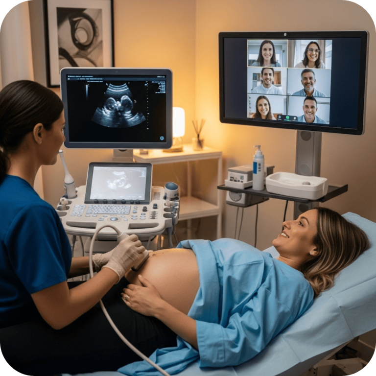 Sí. Conecta el HDMI del ecógrafo a un capturador HDMI→USB, y se verá en la plataforma como una cámara.